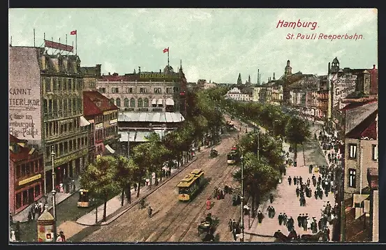 AK Hamburg, St. Pauli Reeperbahn mit Strassenbahnen