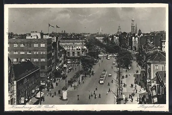 AK Hamburg-St. Pauli, Reeperbahn mit Strassenbahnen