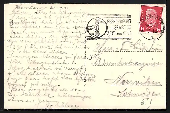 gelaufen 1933, Bugspur oben mittig, guter Zustand
