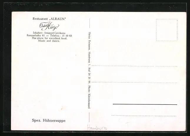 AK Hamburg-St. Pauli, Restaurant Alraun Onkel Hugo, Reeperbahn 61, Bar