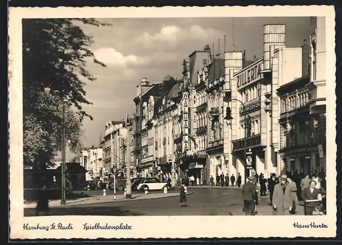 AK Hamburg-St. Pauli, Spielbudenplatz mit Geschäften