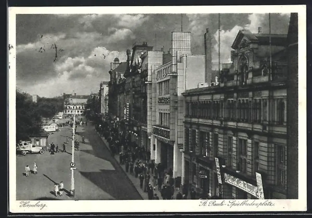 AK Hamburg-St. Pauli, Spielbudenplatz mit Geschäften