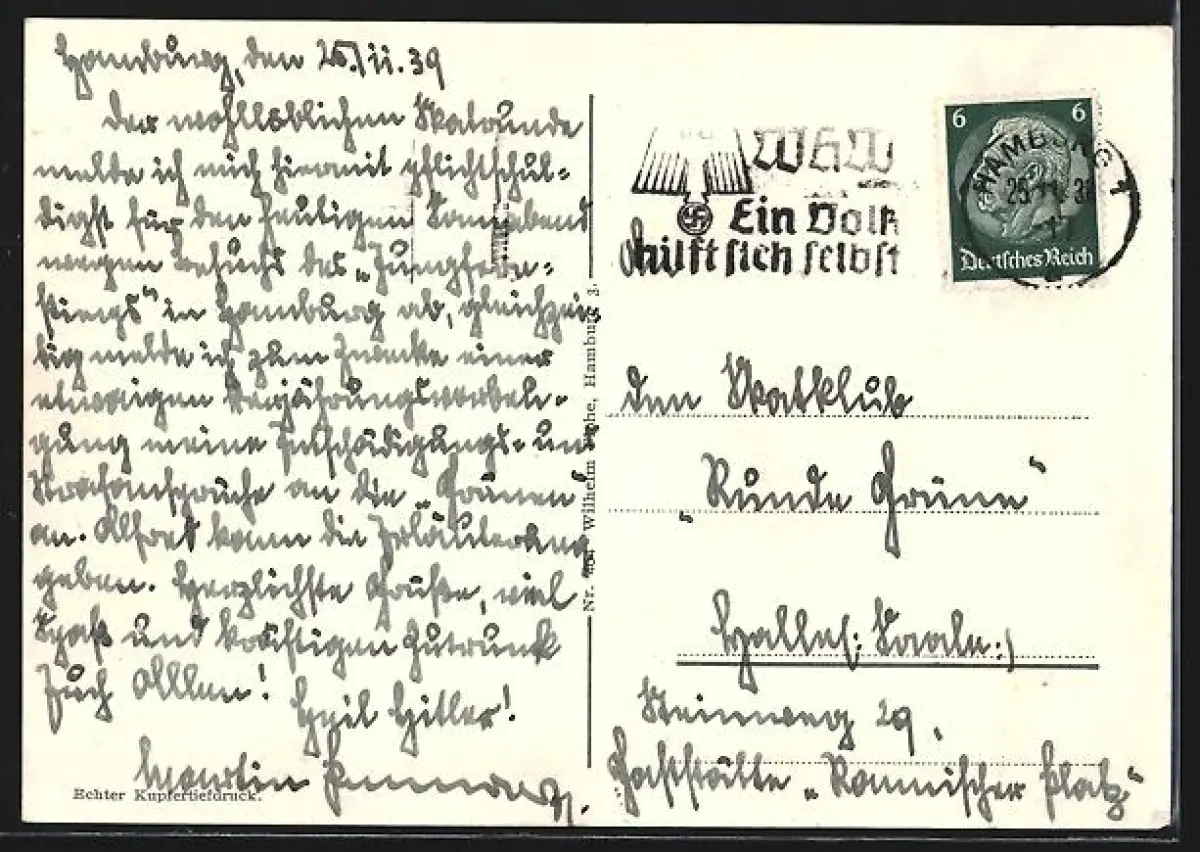 alte Ansichtskarte, gelaufen 1939, Stempelspur, guter Zustand