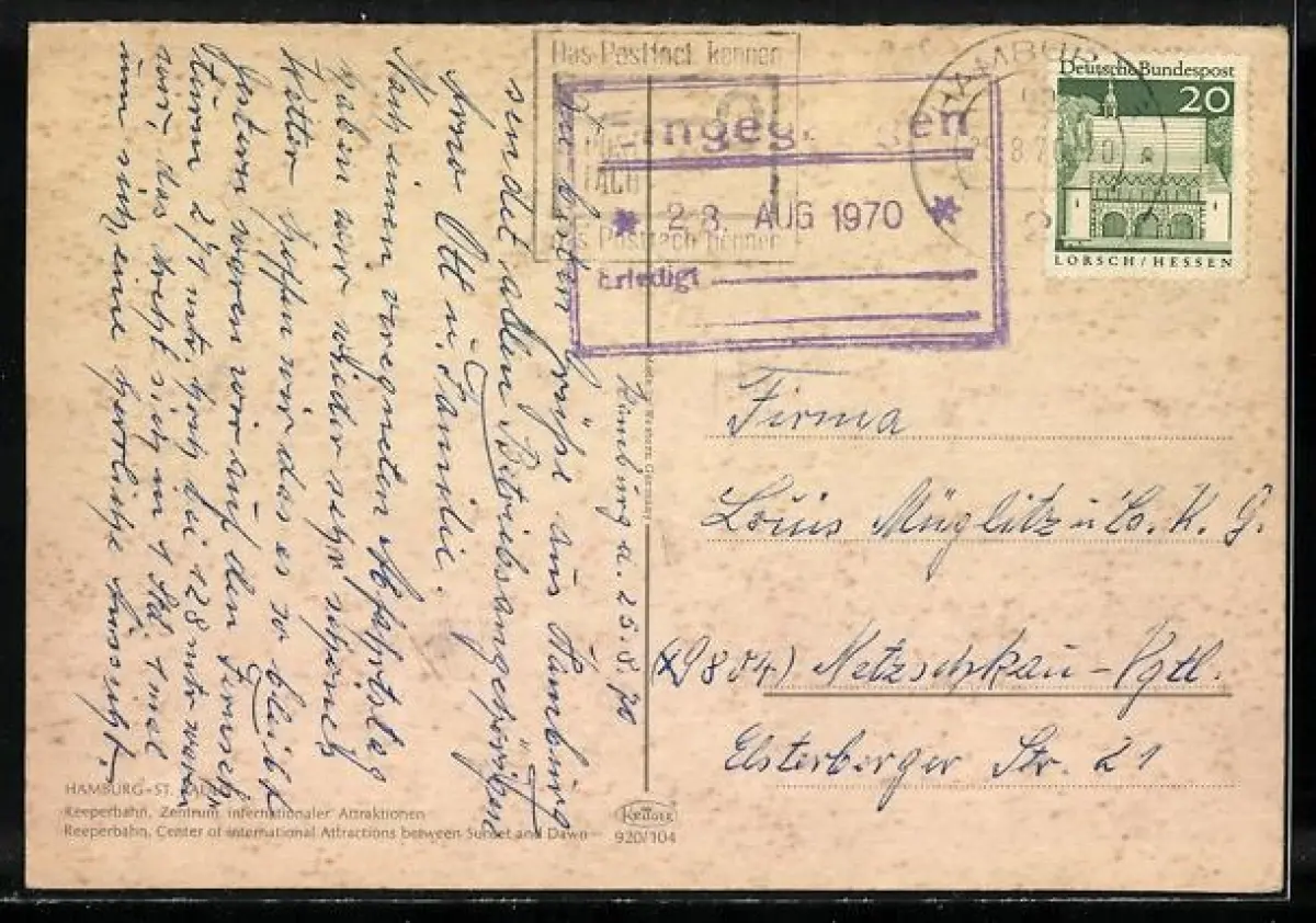 alte Ansichtskarte, gelaufen 1970, guter Zustand