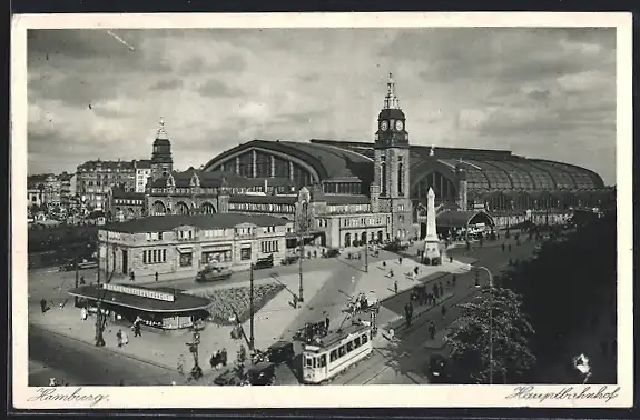 AK Hamburg-St.Georg, Hauptbahnhof mit Strassenbahn