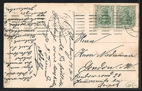 alte Ansichtskarte, gelaufen 1911, Stempelspur, Eckknick re. unten, guter Zustand