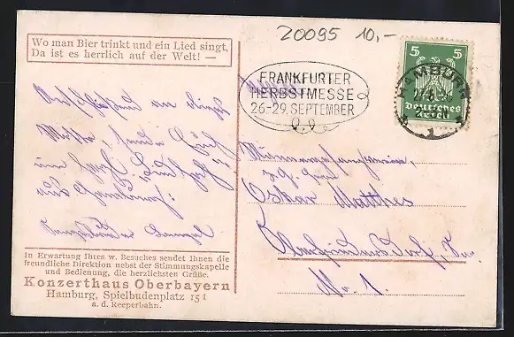 AK Hamburg-St.Pauli, Konzerthaus Oberbayern am Spielbudenplatz 151 a.d. Reeperbahn