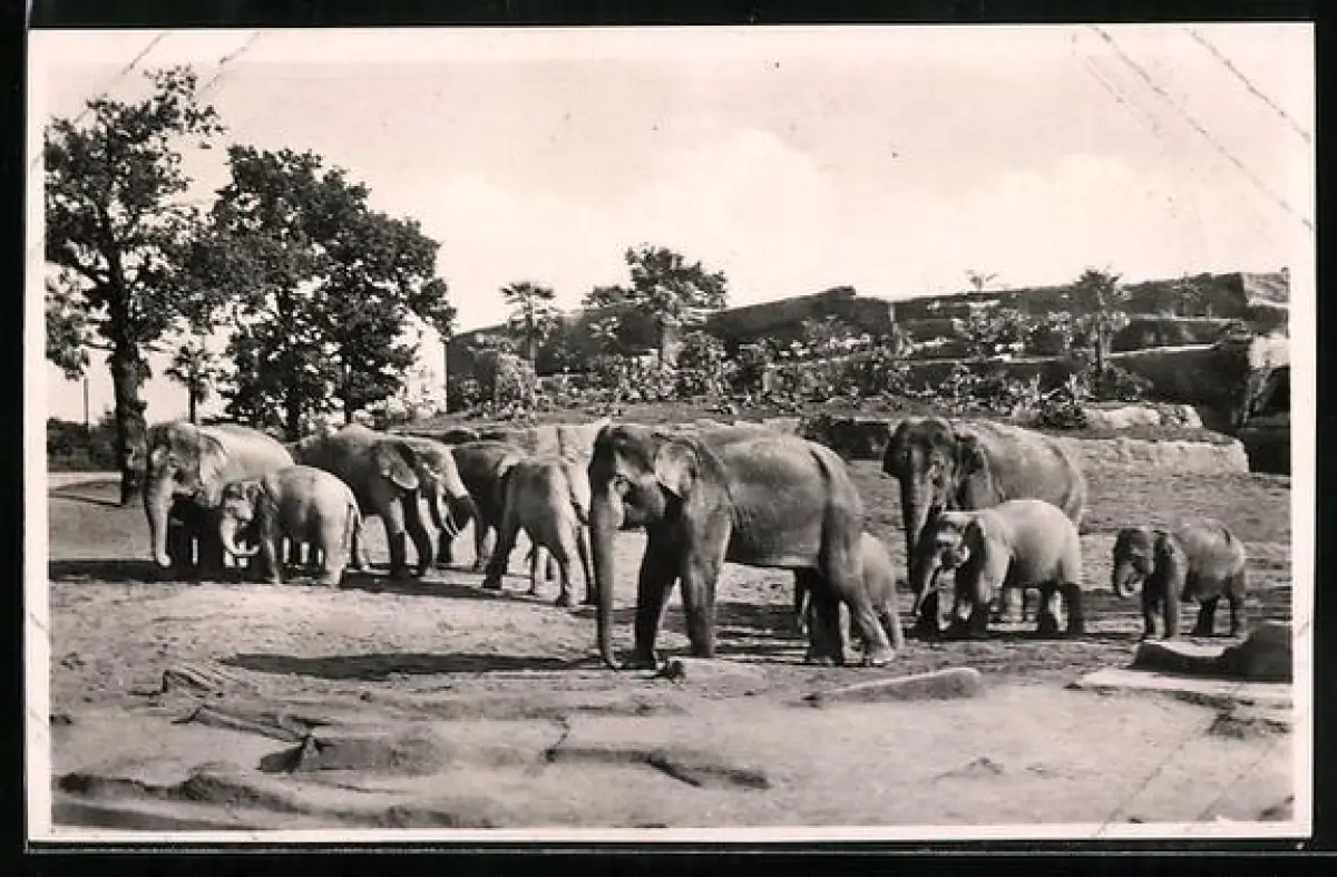 AK Hamburg-Stellingen, Carl Hagenbeck`s Tierpark, Elefenten-Freisichtanlage