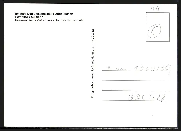 AK Hamburg-Stellingen, Ev.-luth. Diakonissenanstalt Alten Eichen, Fliegeraufnahme