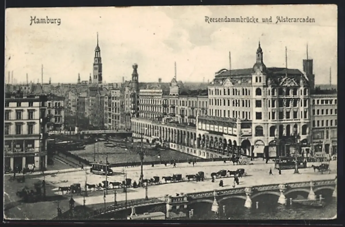 AK Hamburg, Strassenbahnen auf der Reesendammbrücke