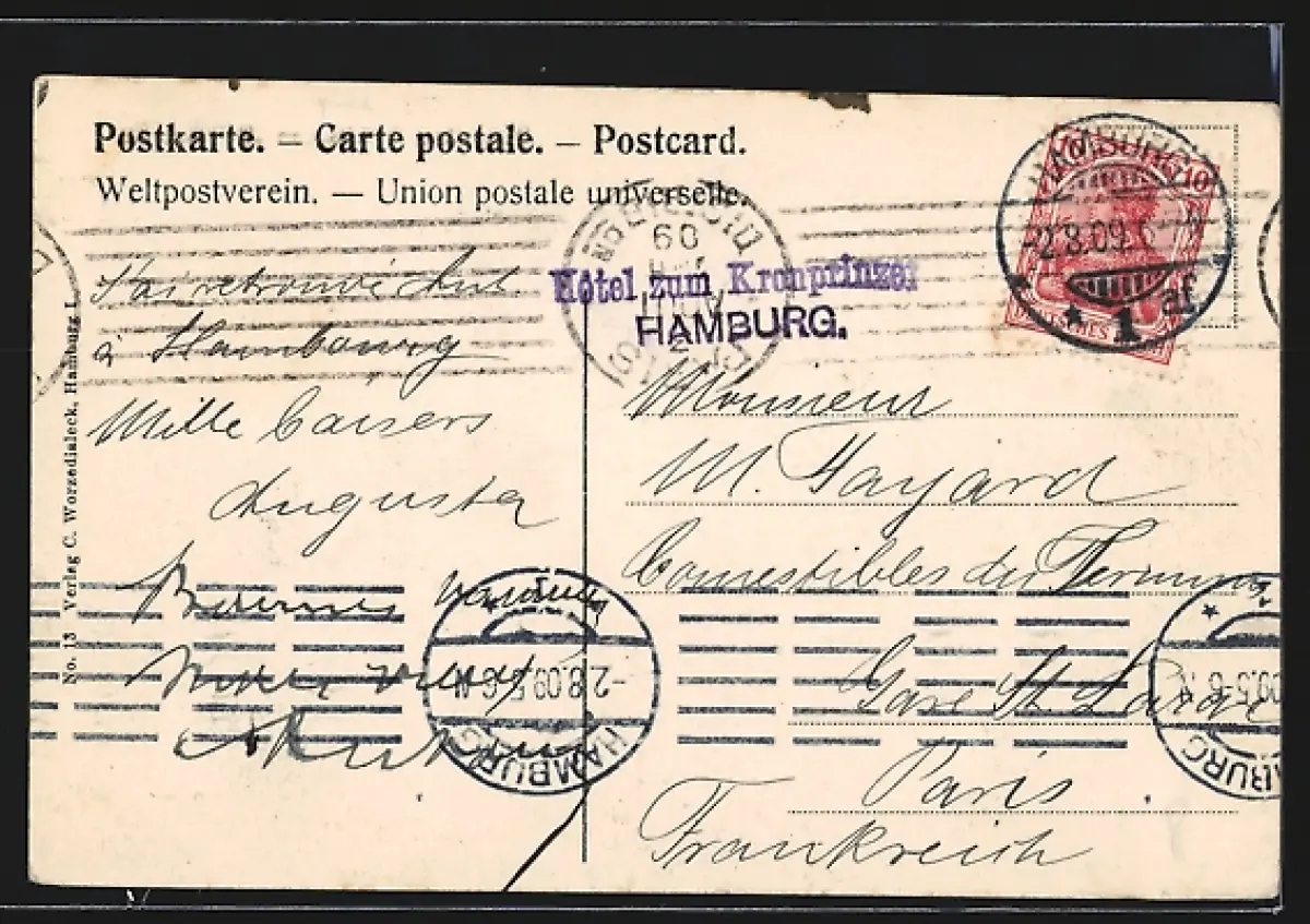 alte Ansichtskarte, gelaufen 1909, Eckknick unten li., guter Zustand