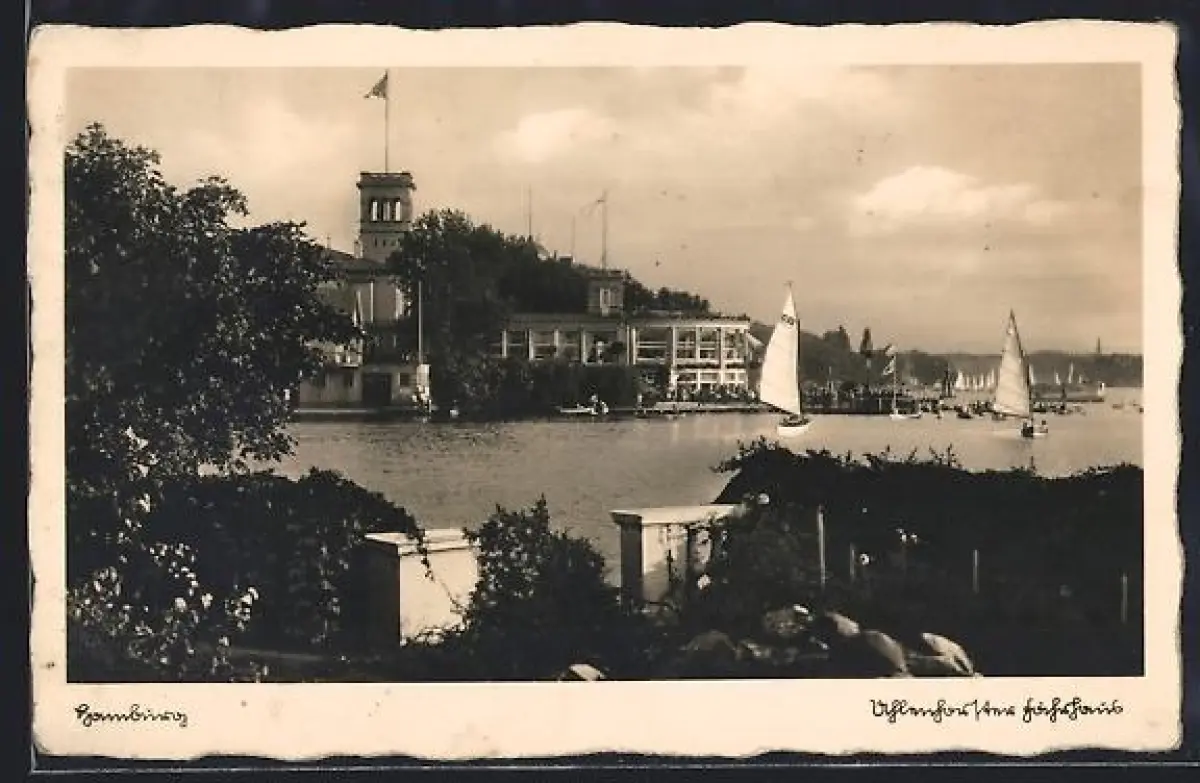 AK Hamburg, Uhlenhorster Fährhaus mit Segelbooten