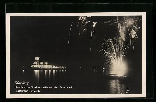 AK Hamburg, Uhlenhorster Fährhaus während des Feuerwerks, Restaurant Schwegler