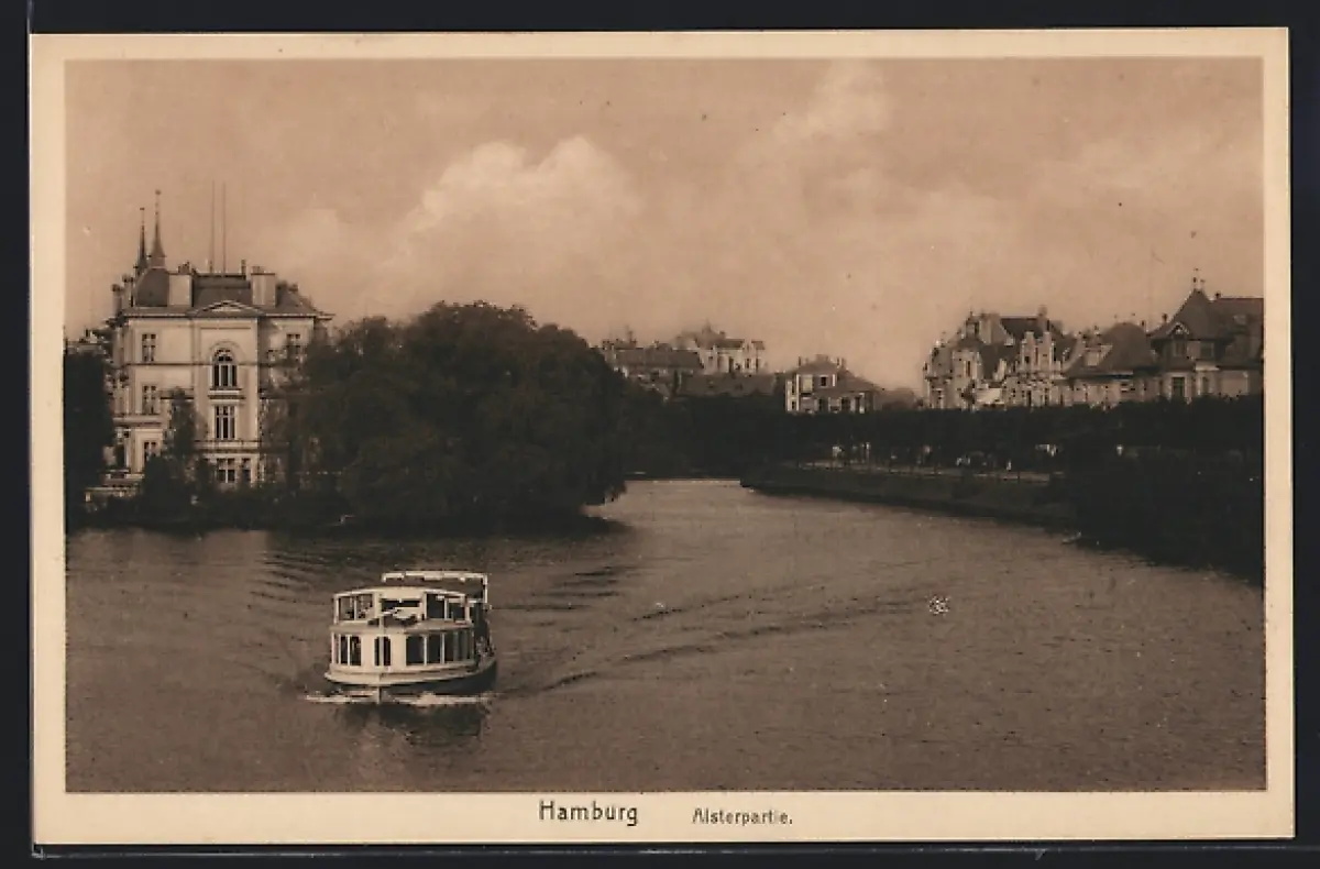 AK Hamburg-Winterhude, Alsterpartie mit Boot