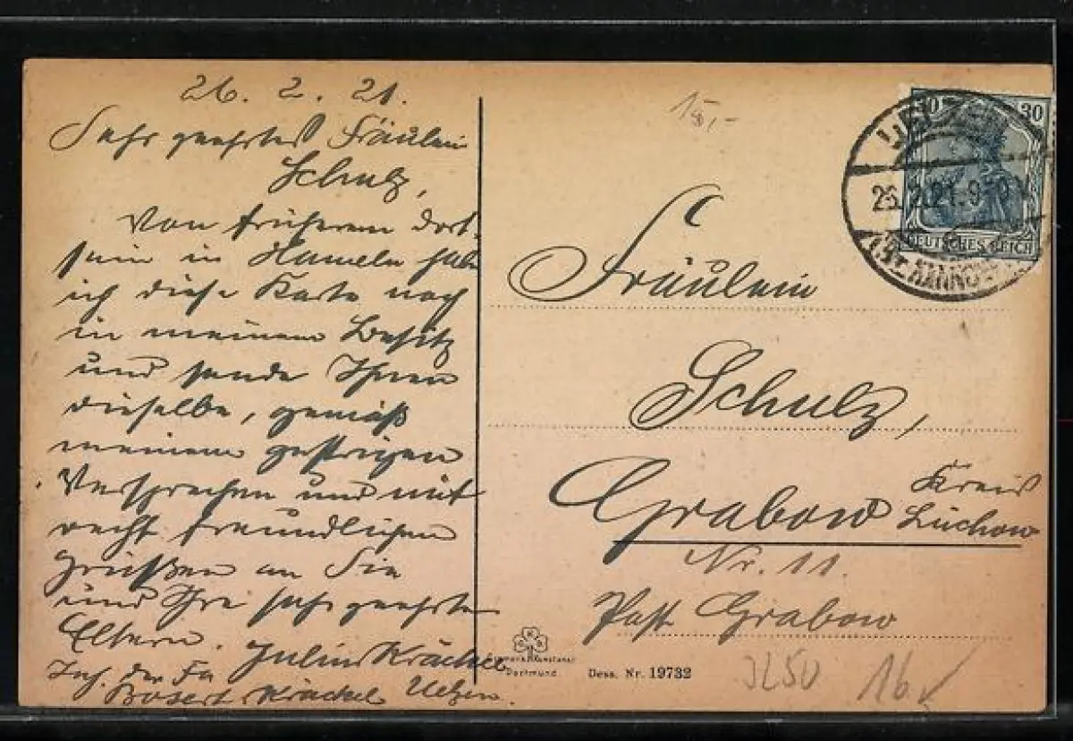 alte Ansichtskarte, gelaufen 1921, Eckknick unten rechts, guter Zustand