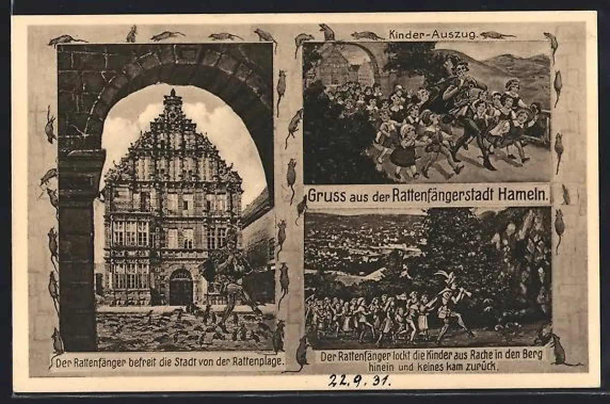 AK Hameln, Rattenfänger, Szenen aus der Sage