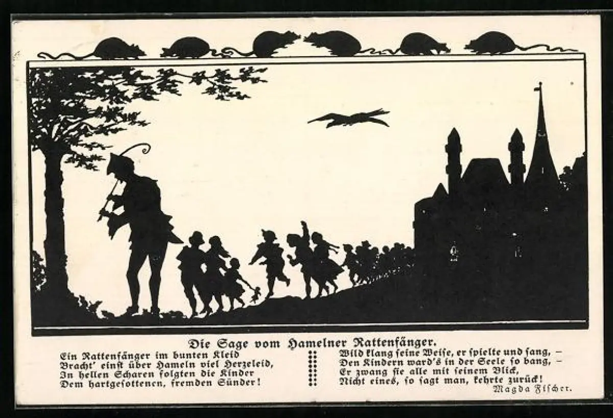 AK Hameln, Sage vom Rattenfänger, Scherenschnitt