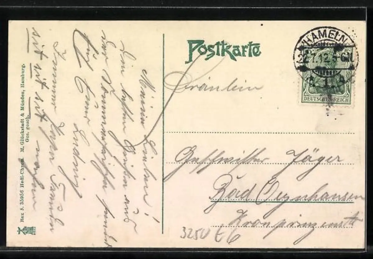 alte Ansichtskarte, gelaufen 1912, Stempelspur, guter Zustand