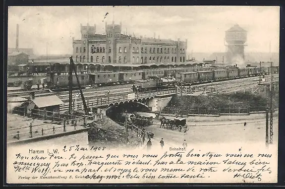 AK Hamm i. W., Bahnhof mit Strassenpartie