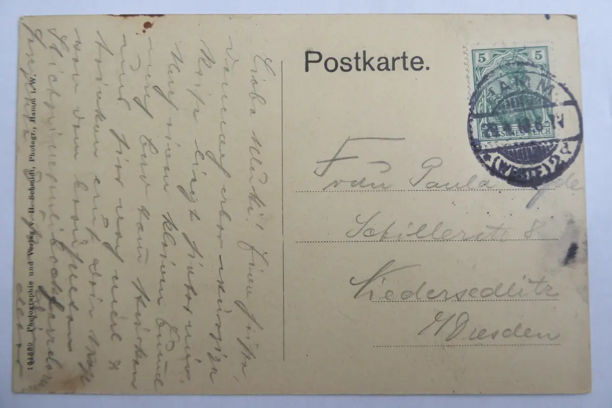Photographie und Verlag von H. Schmidt, Hamm i.Westfalen. Gelaufen 1910, oben links kleine Tintenflecke. Gut erhalten.