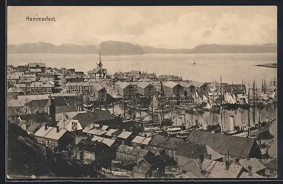 AK Hammerfest, Ortspartie mit Hafen und Kirche