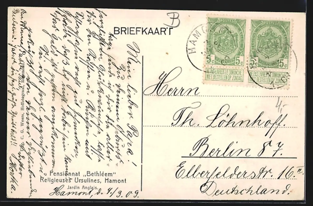 AK Hamont, Pensionnat Bethléem Religieuses Ursulines, Jardin Anglais