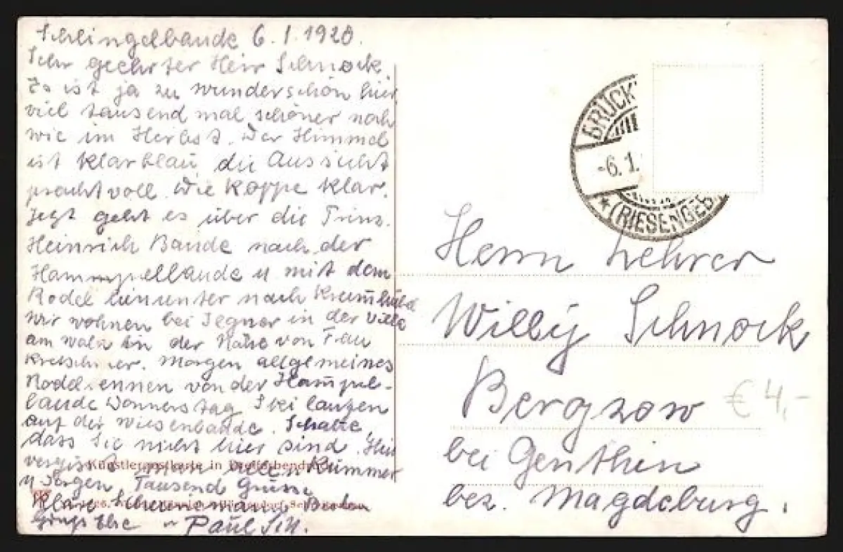 alte Ansichtskarte, gelaufen 1920, Briefmarke entfernt, Eckknick li. oben, guter Zustand