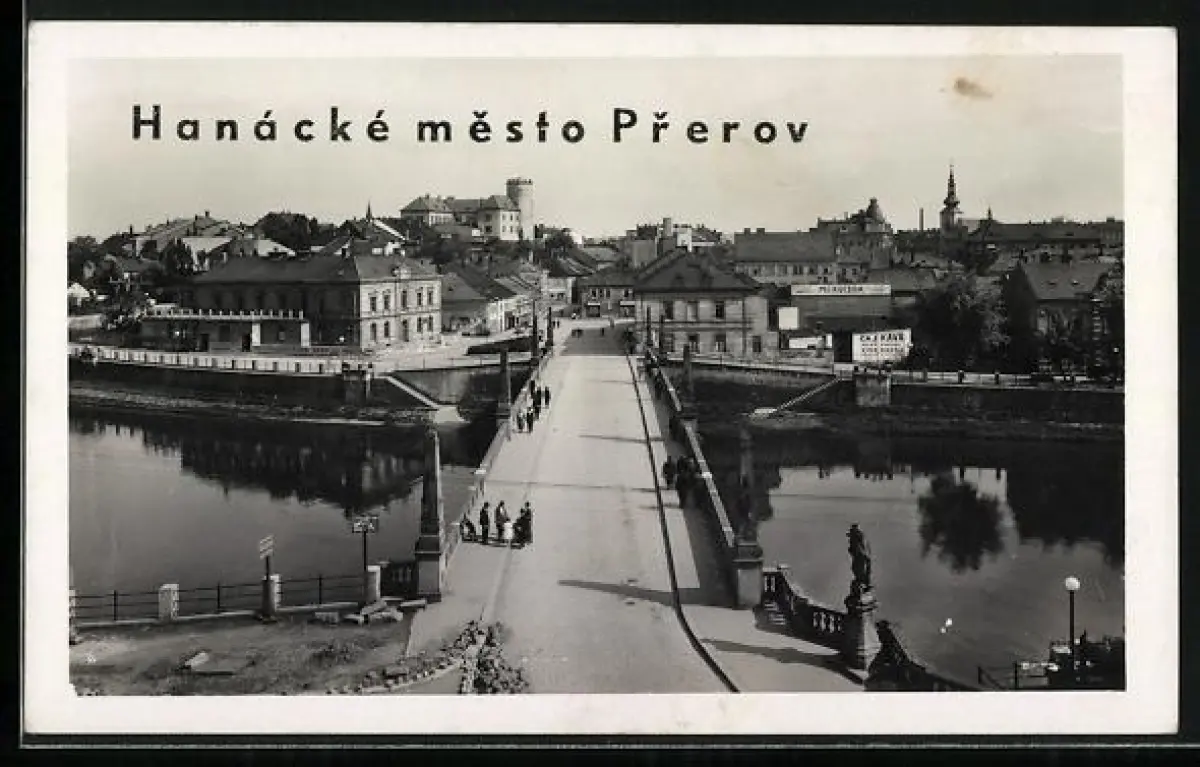 AK Hanacke mesto Prerov, Ortspartie mit Brücke