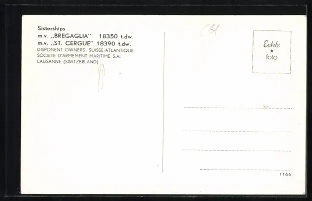 AK Handelsschiff M. V. Bregaglia vor der Küste