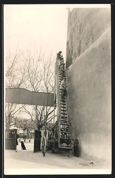 AK Handwerker stehen auf der Leiter und arbeiten an einer Häuserwand