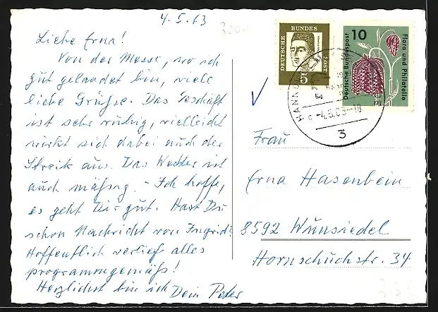 gelaufen 1963, Eckknick re. oben, guter Zustand