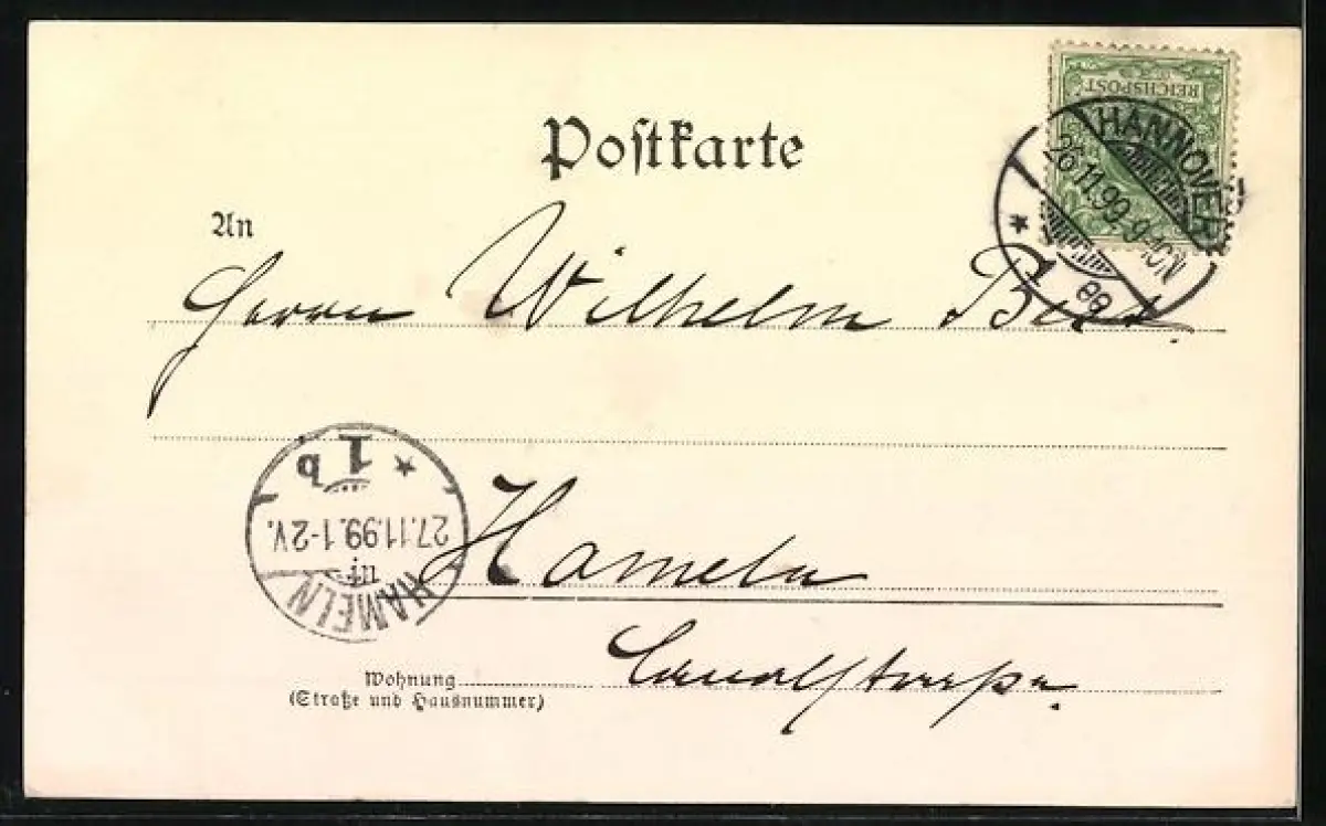 alte Ansichtskarte, gelaufen 1899, guter Zustand