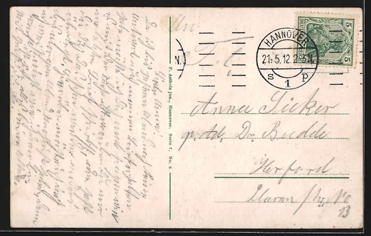 alte Ansichtskarte, gelaufen 1912, Stempelspur, guter Zustand