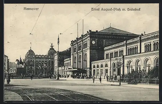 AK Hannover, Ernst August Platz mit Bahnhof, Denkmal
