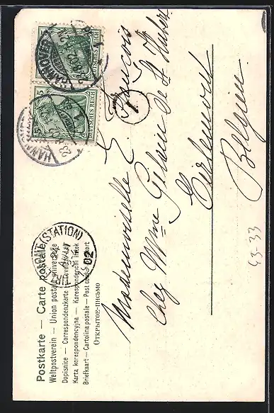alte Ansichtskarte, gelaufen 1902, minimaler Eckschaden re. oben