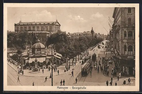AK Hannover, Georgstrasse mit Cafe Kröpcke und Strassenbahn