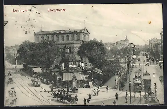 AK Hannover, Georgstrasse mit Strassenbahnen