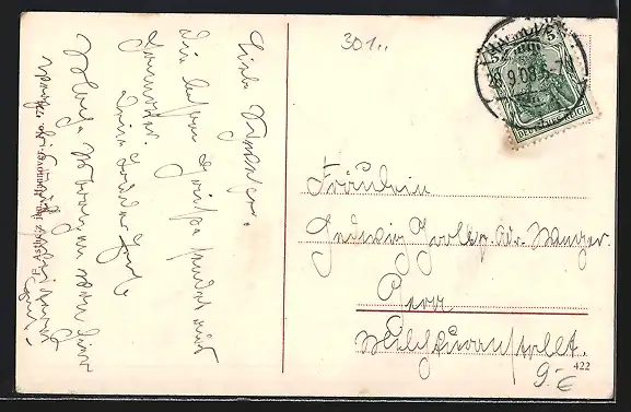 alte Ansichtskarte, gelaufen 1908, Stempelspur, guter Zustand