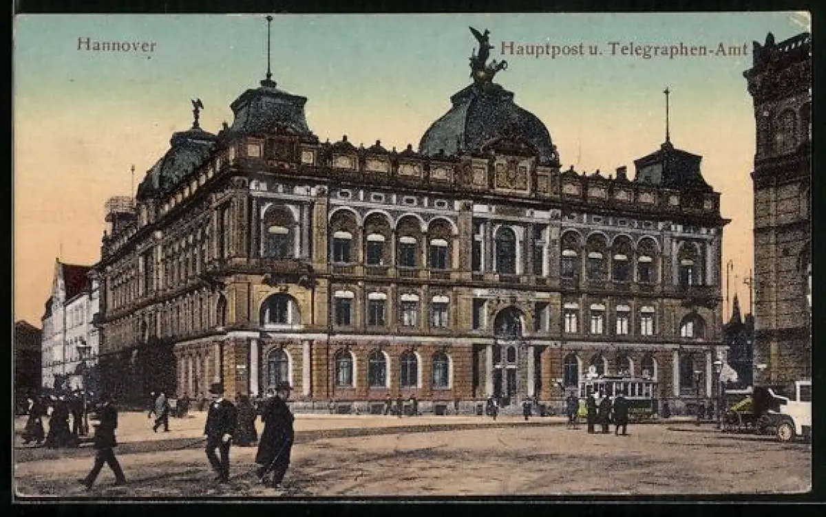 AK Hannover, Hauptpost und Telegraphen-Amt mit Strassenbahn