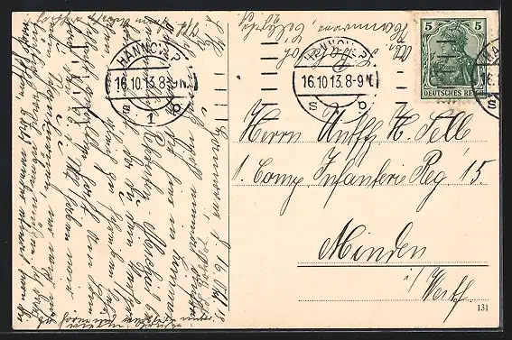 alte Ansichtskarte, gelaufen 1913, Stempelspur, guter Zustand