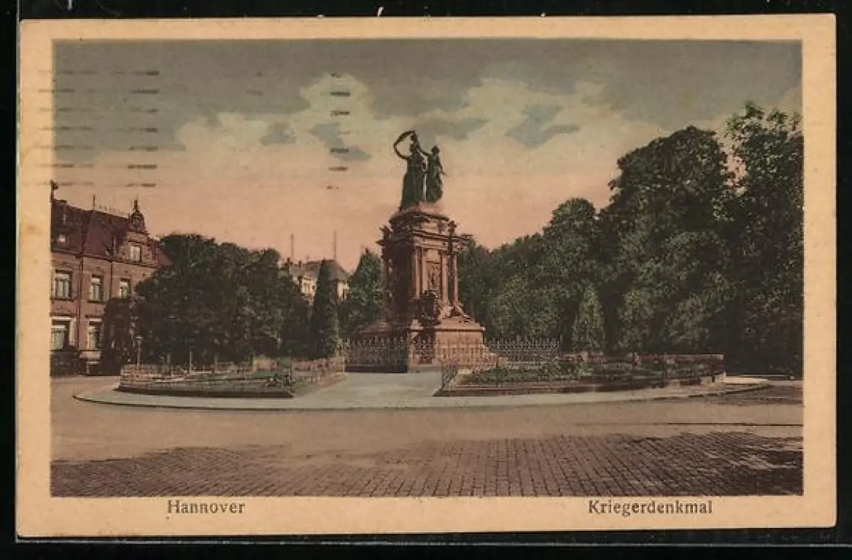 AK Hannover, Kriegerdenkmal mit Grünanlagen