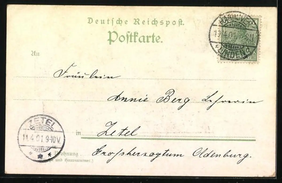 alte Ansichtskarte, gelaufen 1901, guter Zustand