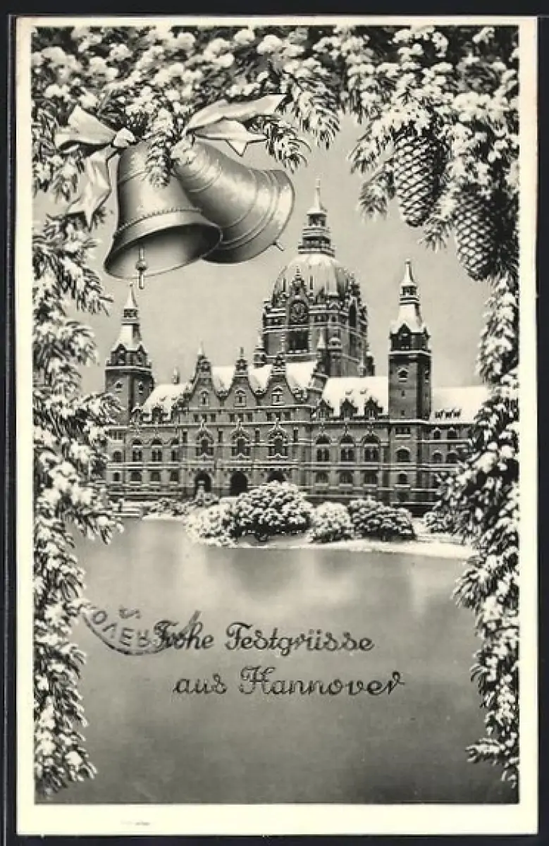 AK Hannover, Neues Rathaus im Winter