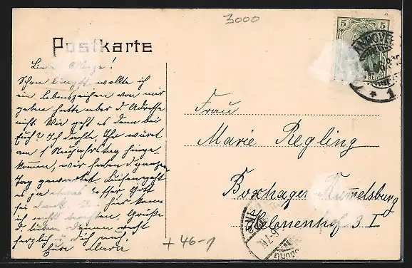 alte Ansichtskarte, gelaufen 1906, rückseitig Klebe- und Papierreste, Stempelspur, guter Zustand