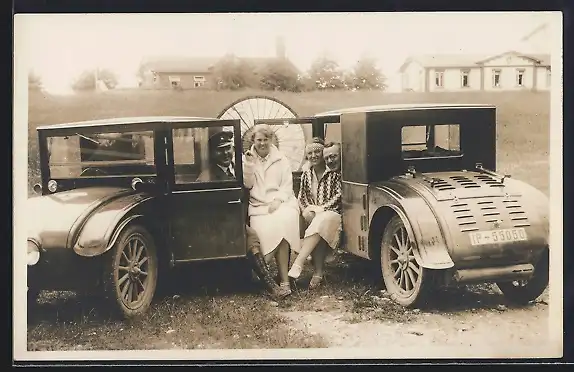 AK Hanomag-Kommissbrot Autos, 2 /10 PS, auf einer Wiese, zwei Ehepaare darin