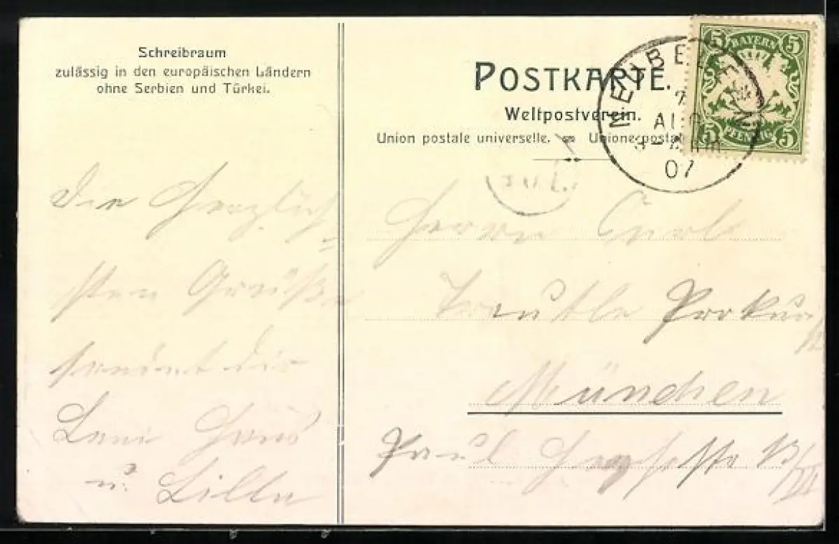 alte Ansichtskarte, gelaufen 1907, Eckknick unten re., guter Zustand