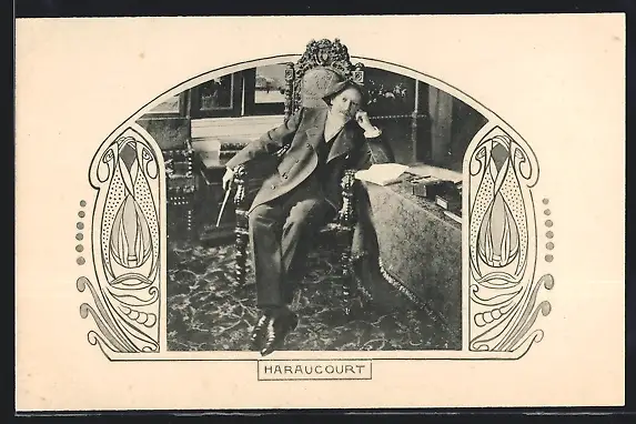 AK Haraucourt in denker Pose auf seinem Stuhl