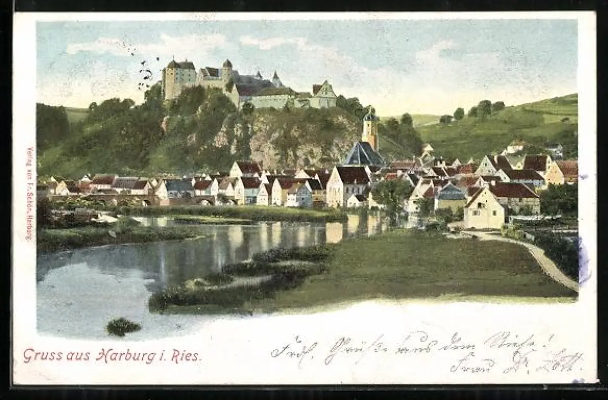 AK Harburg i. Ries., Ortsansicht mit Blick zur Burg