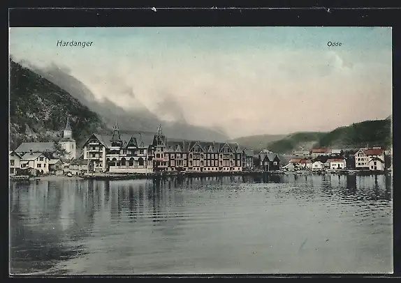AK Hardanger, Ortspartie mit Blick über das Ufer