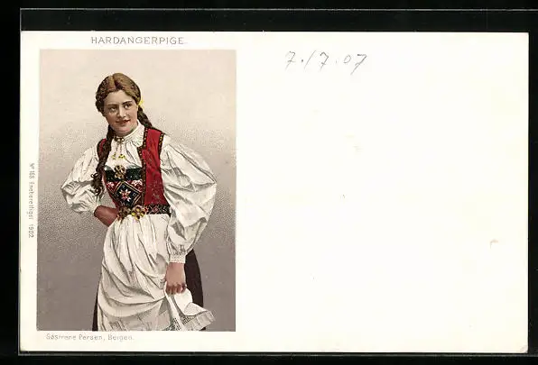 AK Hardangerpige, Norwegerin in Trachtenkleidung